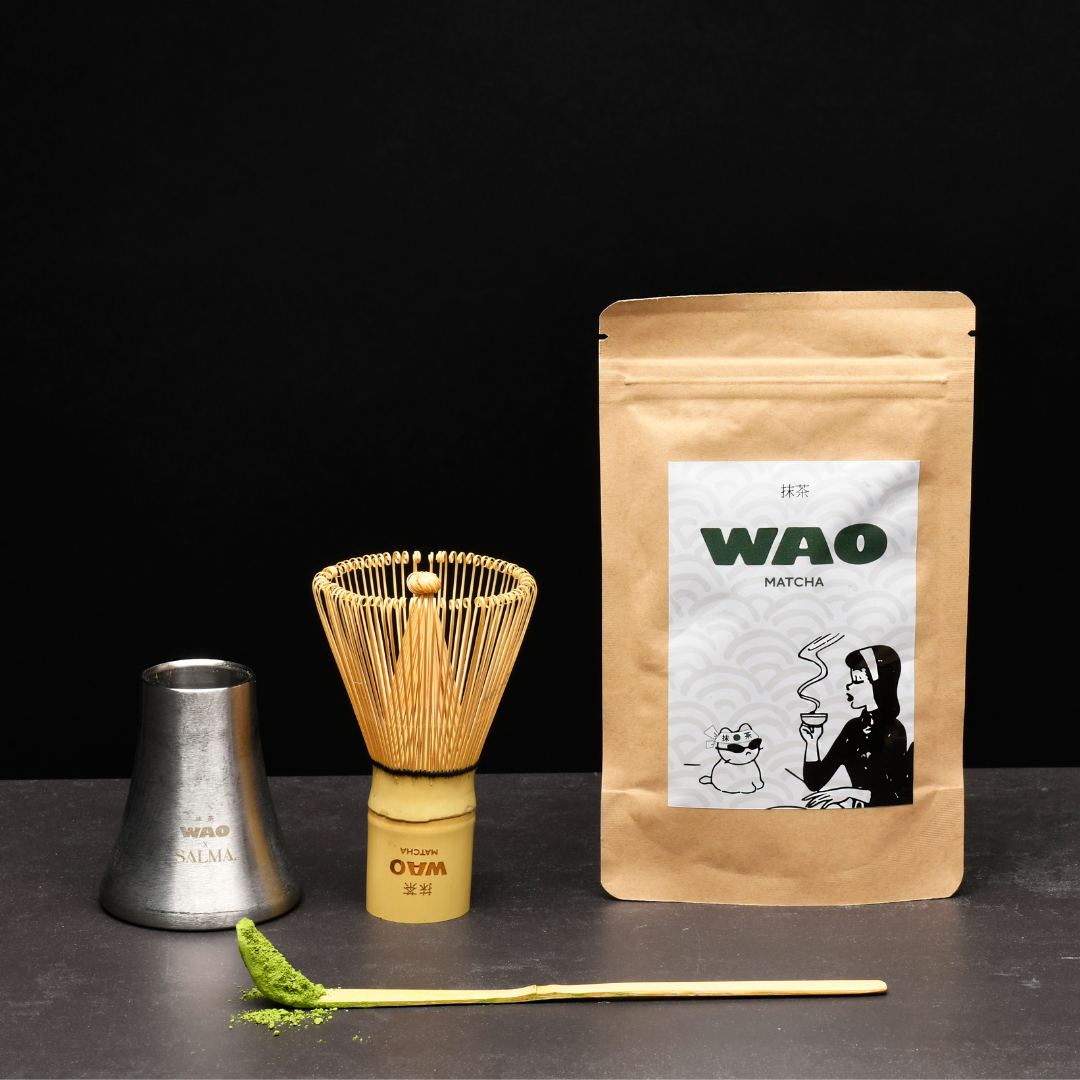 Ett design matcha kit med ett lyxigt vispställ i krom, premium matcha och bamburedskap. Kitet är skapat för dig som vill göra din matcharutin med funktionella och stilrena verktyg varje morgon.
